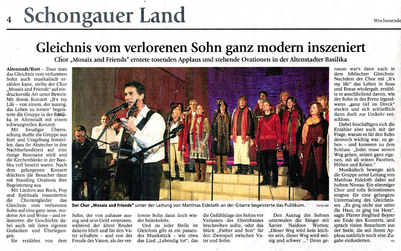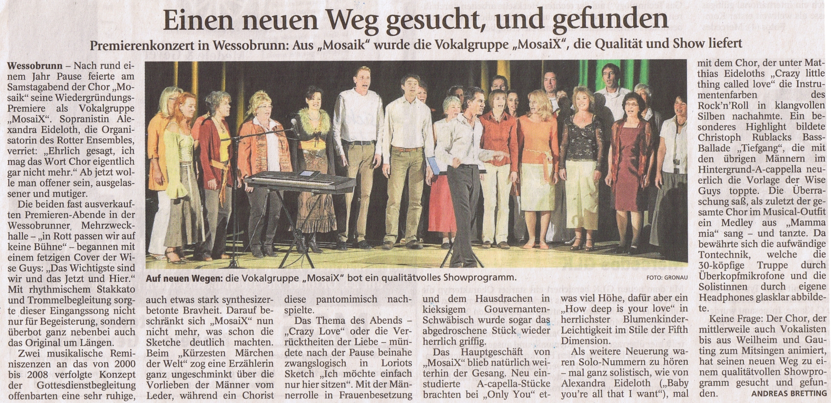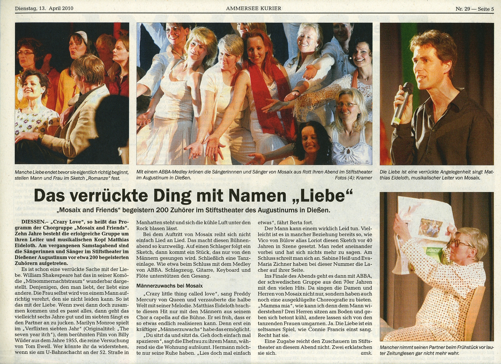 Bericht Landsberger Tagblatt April 2014 zu unsererm Konzert "Crazy Love auf Wolke 8" http://www.augsburger-allgemeine.de/landsberg/Mosaix-entfuehrt-auf-Wolke-8-id29427406.html