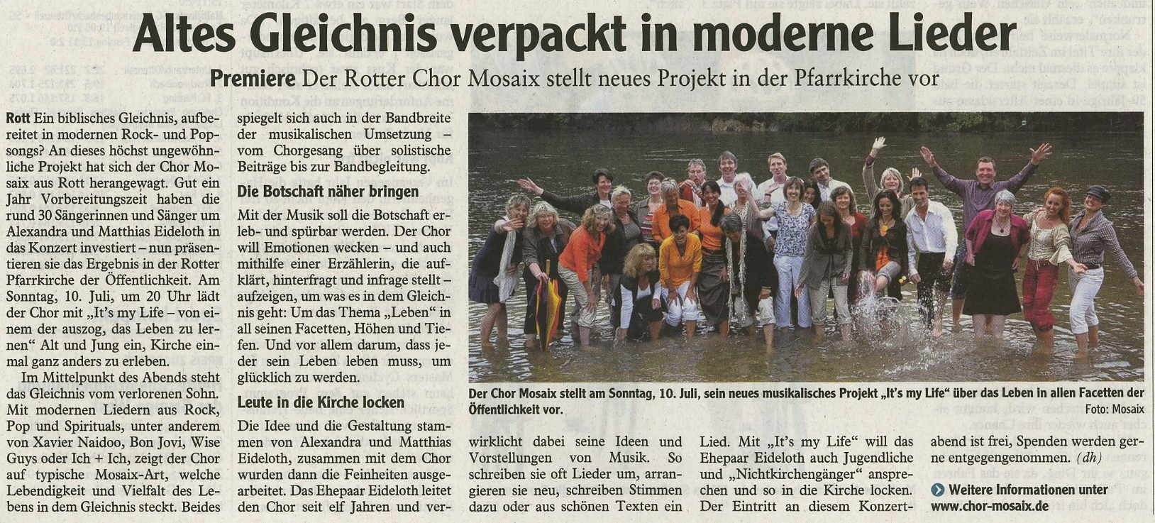 Vorbericht zum Konzert "It`s my Life" in Rott - Landsberger Tagblatt (07. Juli 2011) (siehe Augsburger Allgemeine)